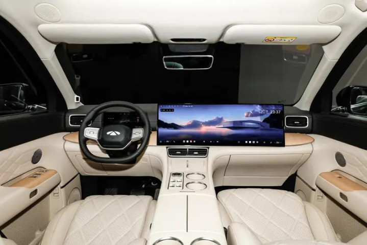 内饰方面,风云T11前后排均配备娱乐大屏,前排为30英寸一体式联屏,后排为17.3英寸的超大屏,全车配备23扬声器,支持AI大模型语音助手。